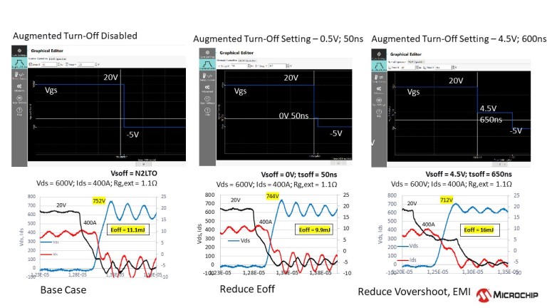 Weber pointed out that Augmented Switching is a technique whereby we turn the device on and off in controlled steps, where we control the time and the voltage level of each step. And by doing this and modifying these steps through a software interface very precisely, the desginers are able to get rid of false faults, mitigate ringing, lower EMI, and reduce voltage overshoot and undershoot.
