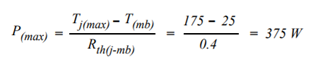 The maximum capability of the device in a real-life application will depend on the mounting base (PCB) temperature, in the case of datasheet this is at 25°C and the calculated ID(max) is 495 A. The same principle can be used to calculate the application ID(max) for the relevant temperature. It is important to note that Tmb is likely to rise because of high current and MOSFET must operate below Tj(max) .