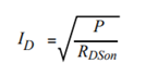 The RDS(on) is the on-state resistance of the MOSFET. The ID max can be calculated considering the RDS(on) at Tj(max). The graph in Figure 3 can be used to calculate the current for a specific temperature requirement.