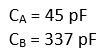The capacitor values for CA1 and CB1 are used for the matching; the values for CA2 and CB2 are neglected because CA2 gives a negative value. This results in the matching capacitors for the differential output circuit to: