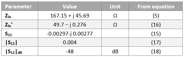 The complex input reflection factor S11 can be calculated with formula (15).